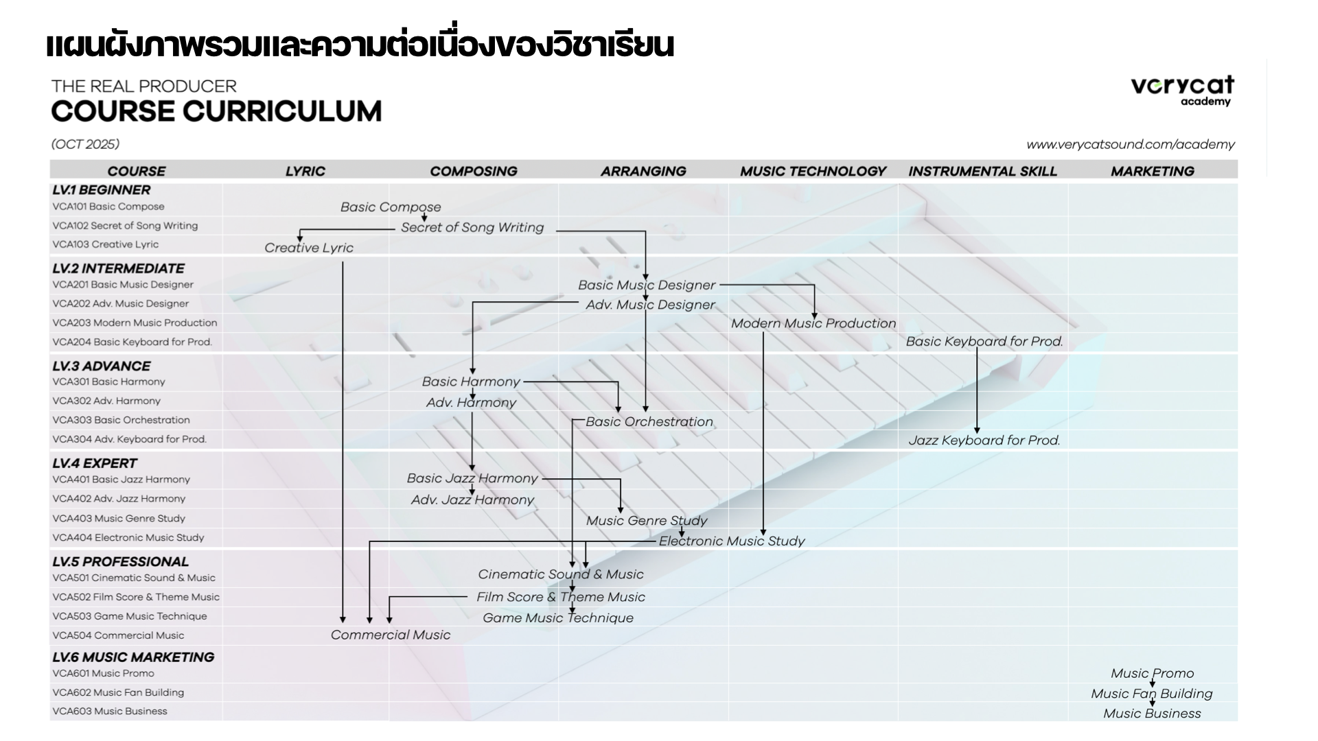 เป็นความรู้ดนตรีแบบ Academic ของแท้ ที่หลอมรวมเข้ากับประสบการณ์การทำงานจริง มีการสอบเพื่อรับใบ Certificate